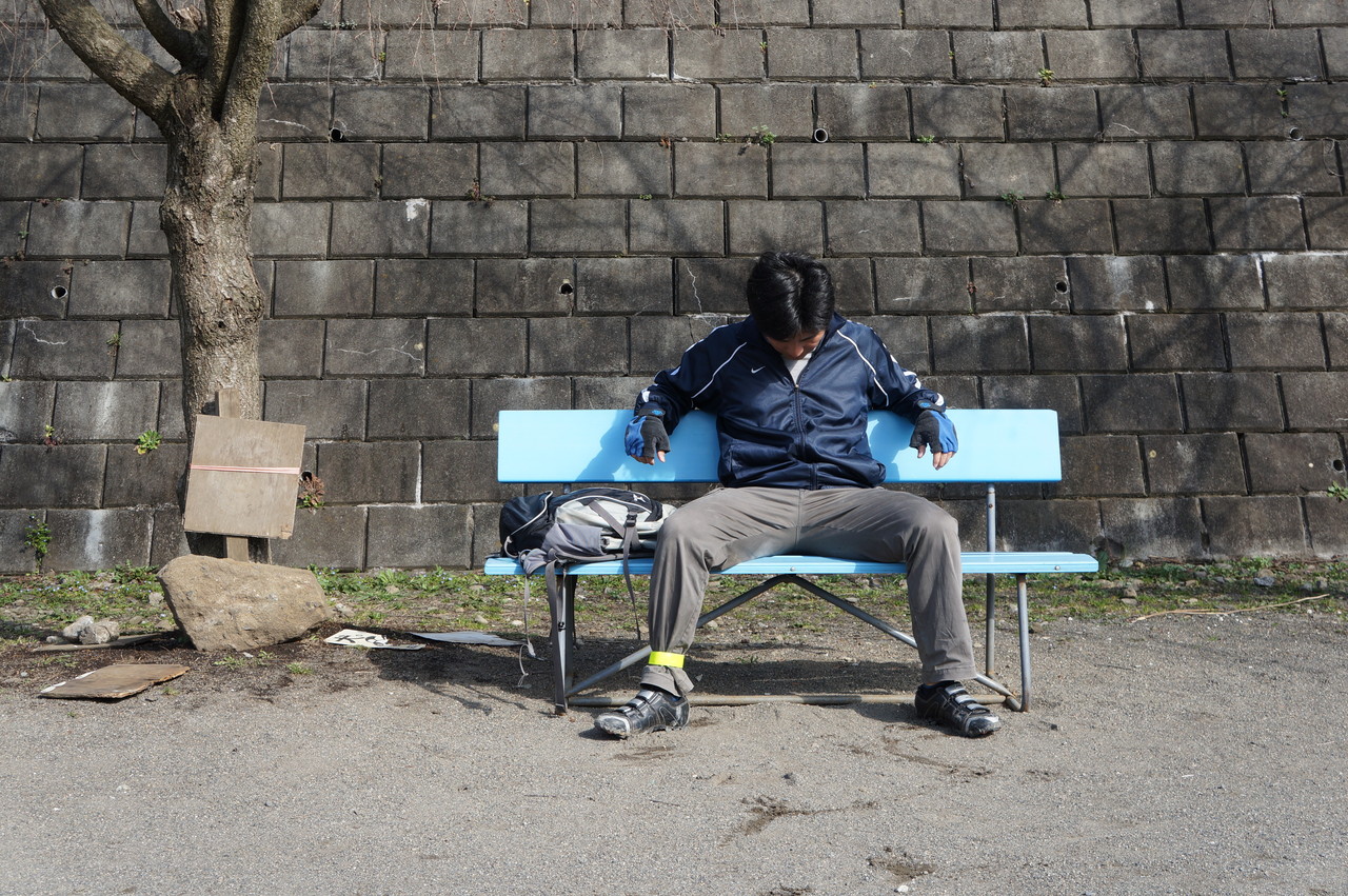 「あった、あったw このベンチだw」