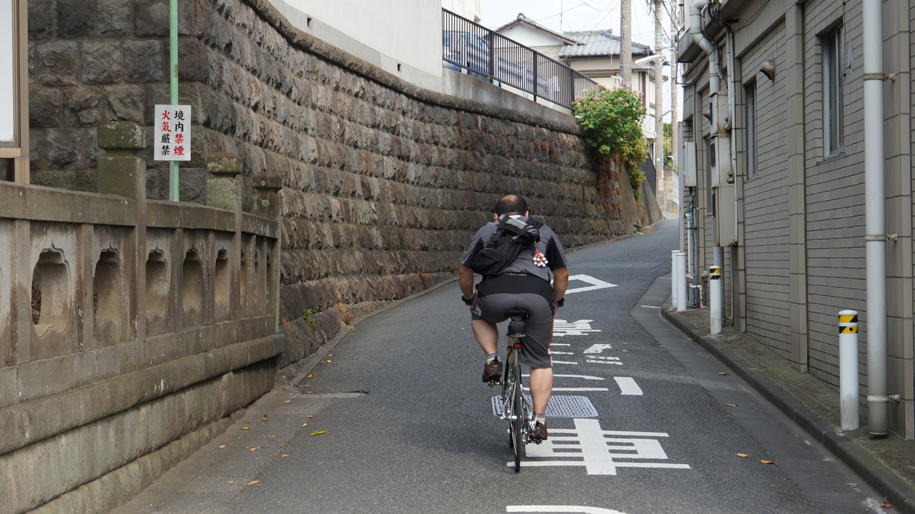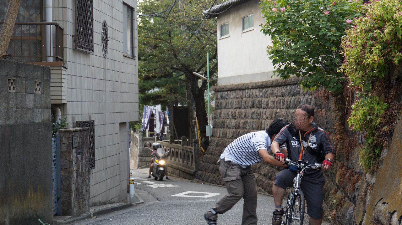 ひったくり犯の乗る自転車が急坂にさしかかったところで、