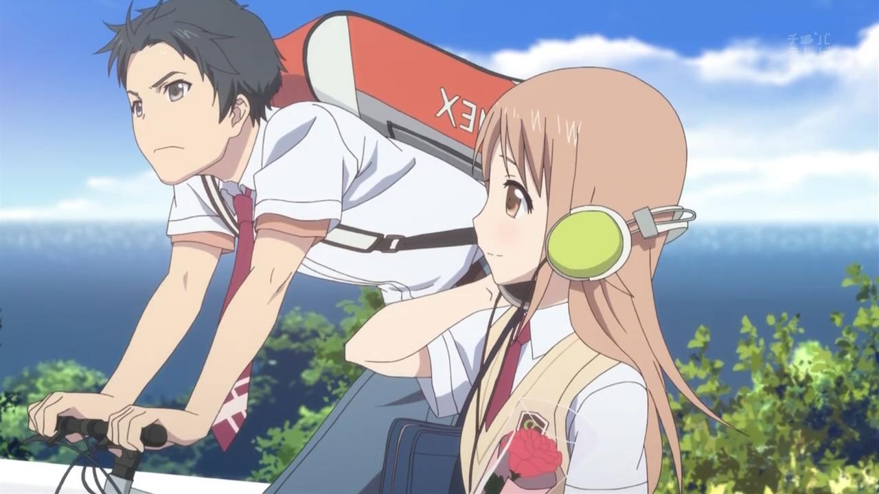高校へ向けて歩く”来夏”の傍らを自転車に乗った”大智”が通り過ぎていくところです。