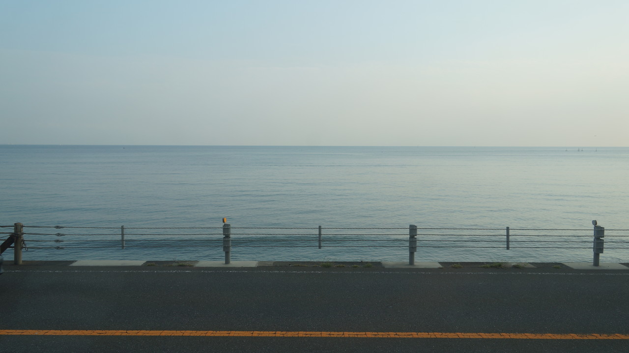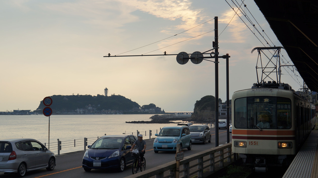 自転車を輪行袋に収め、江ノ電 『鎌倉高校前』駅のホームから見えた風景は…、