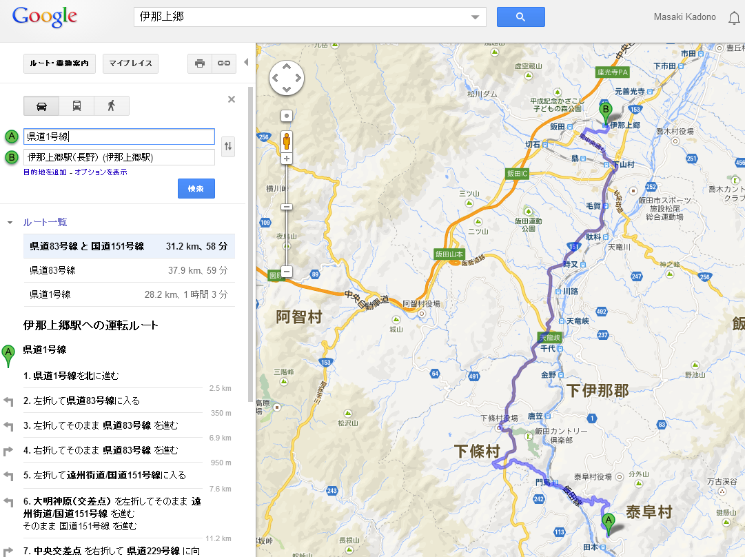 「よしっ、距離は長くなるけど国道151号線に賭ける!」