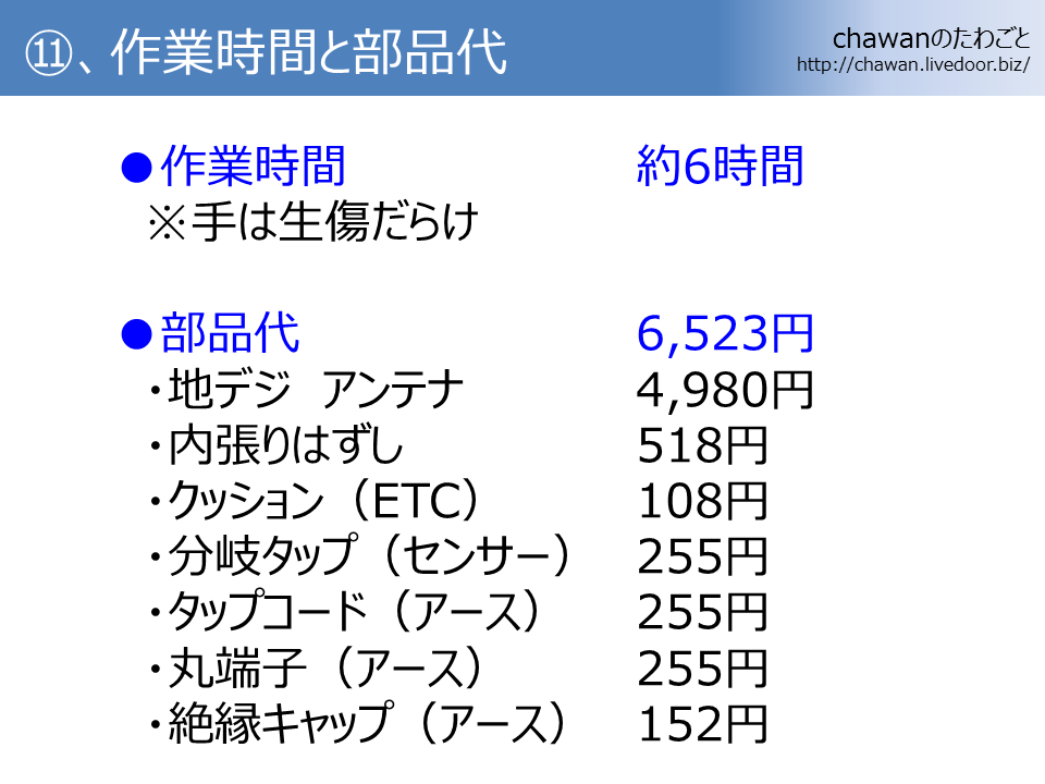 ●作業時間約6時間●部品代約7,000円