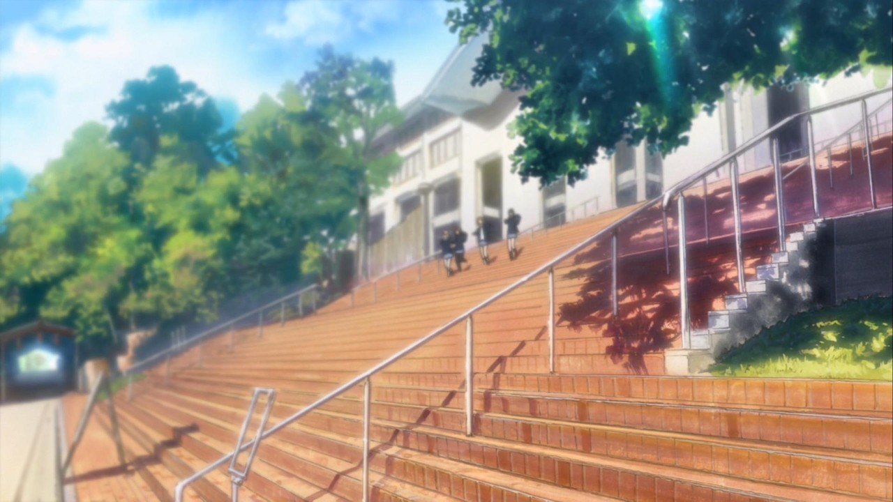 この階段がけいおん!第1期のオープニング曲の1カットにつかわれたのです。